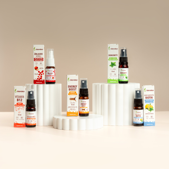 Rýchla dávka energie, sústredenia a podpory imunity v jednom streknutí. Blendea Vitamín B12 Sprej pomáha znížiť únavu, podporiť nervový...