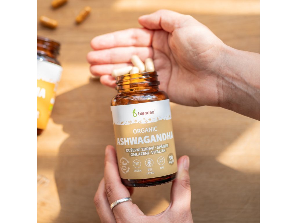 Prášok z koreňa Vitánie snodárnej alebo ashwagandhy v rastlinných kapsulách pre relaxáciu, kvalitný spánok a zdravú hormonálnu rovnováhu. | 90 kapsúl, 15-30 dávok