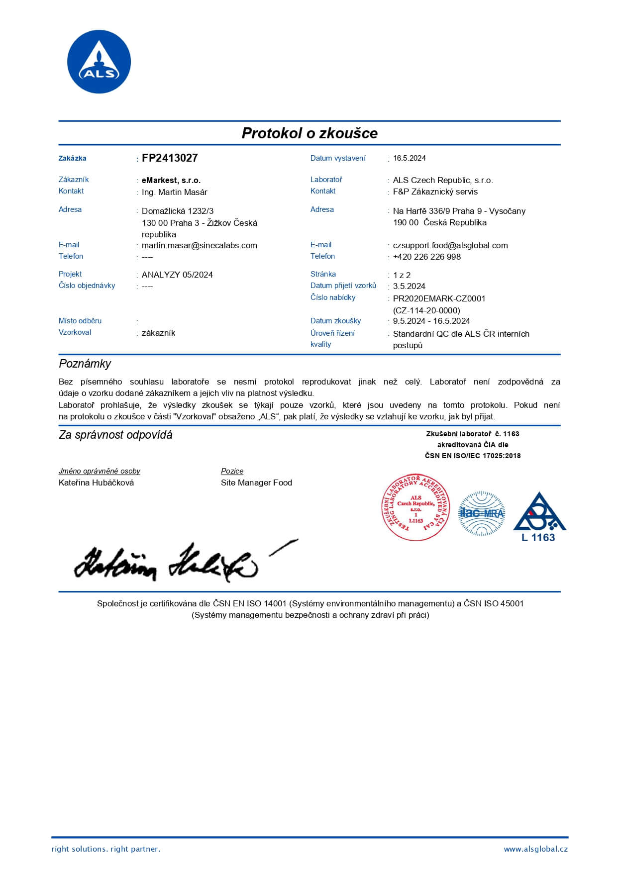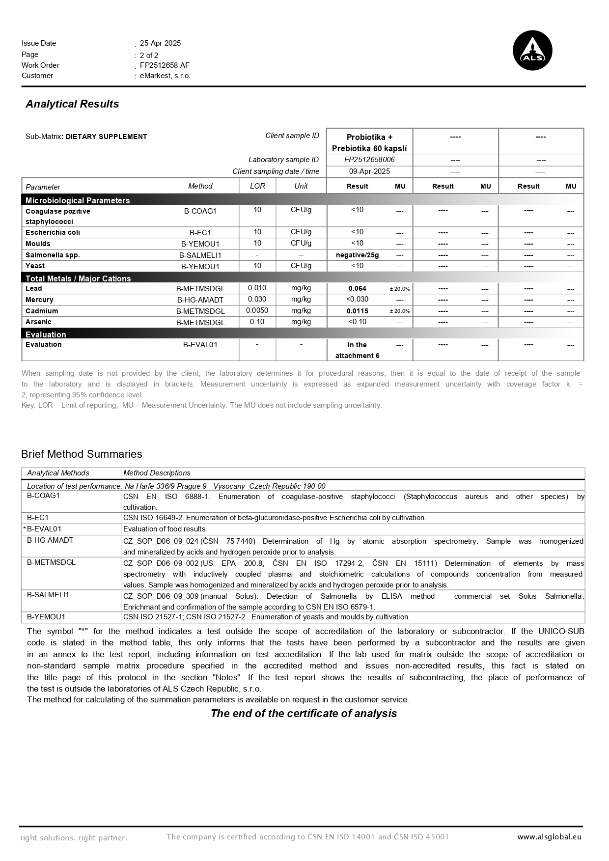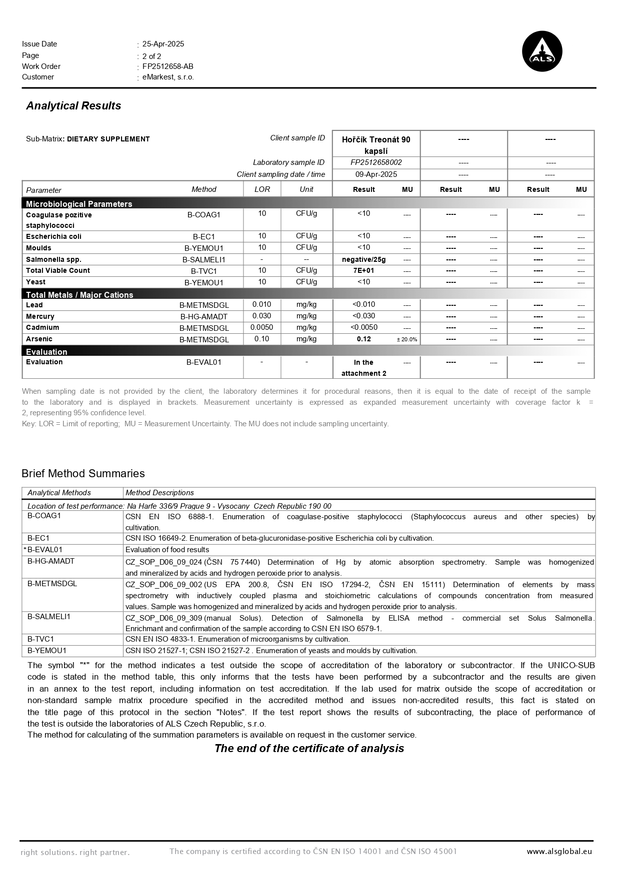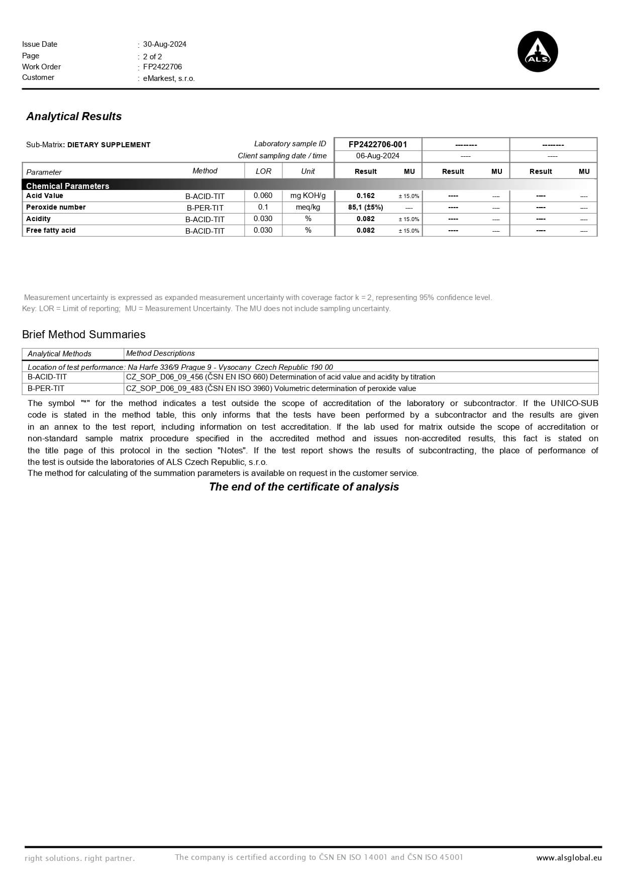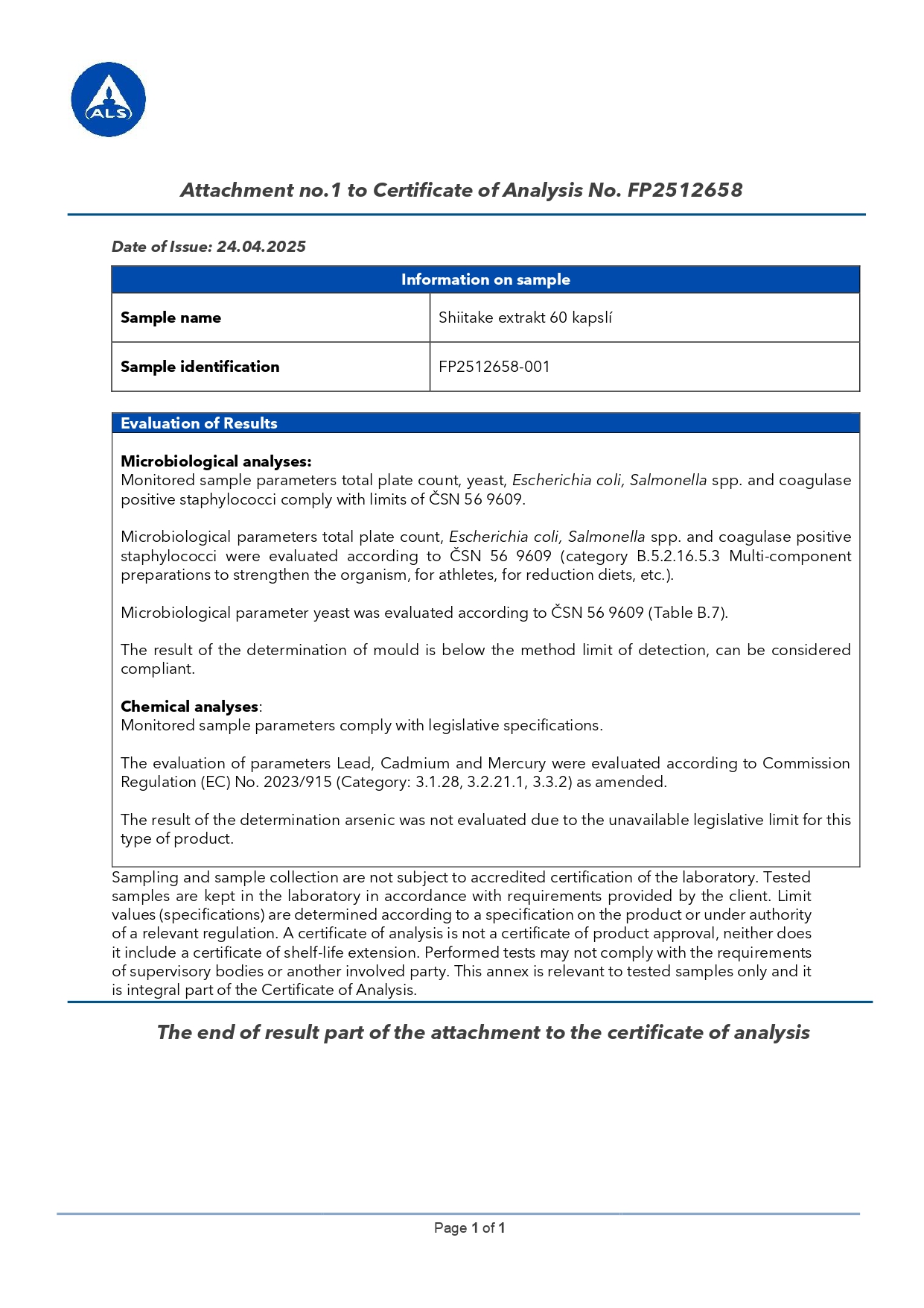Tento certifikát dokazuje, že ide skutočne o prírodný produkt majúci všetky vlastnosti uvedené na etikete a je 100% v poriadku.