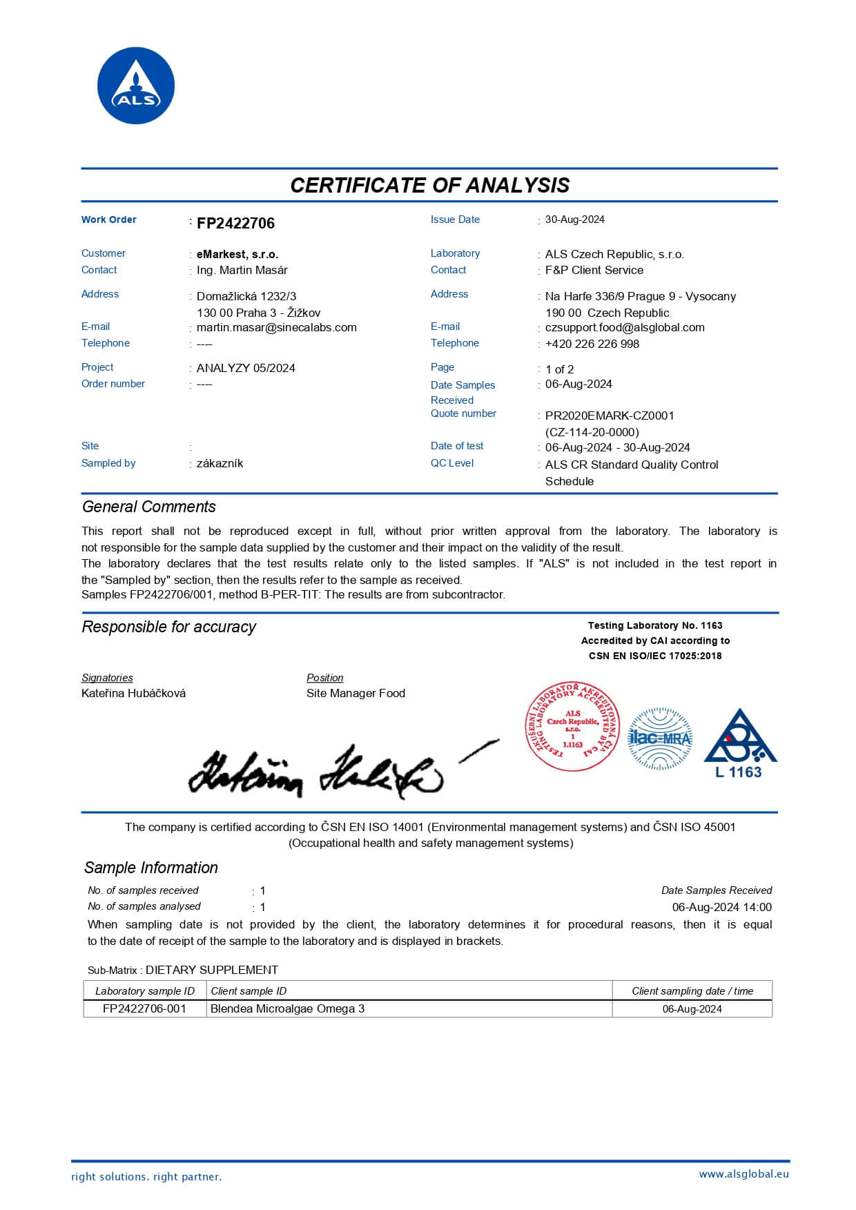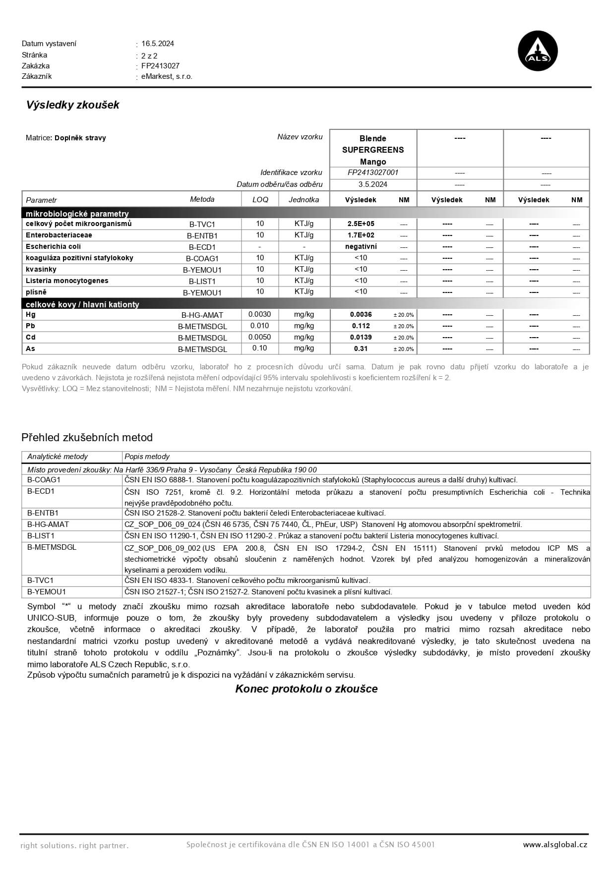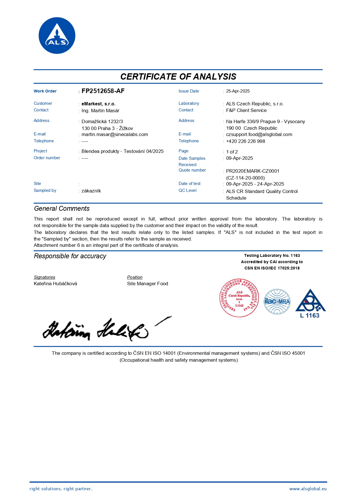 Aby ste si mohli byť istí, že Blendea SUPERGREENS je skutočně tým, za čo sa vydáva, nechali sme ju otestovať u Štátneho zdravotného ústavu.