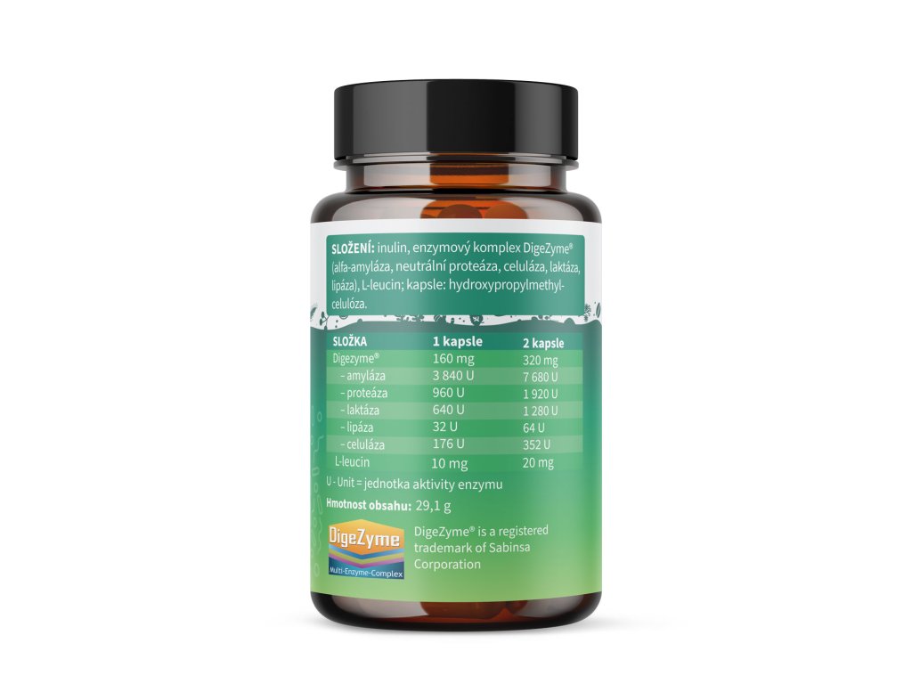 Bojujete s nadúvaním alebo inými tráviacimi problémami? Tráviace enzýmy pomáhajú štiepiť laktózu, bielkoviny, tuky a sacharidy, čím uľahčujú trávenie a prirodzene tak predchádzajú práve plynnatosti, zápcham a podobným problémom. Stačí jedna kapsula denne. | 60 kapsúl, 30-60 dávok