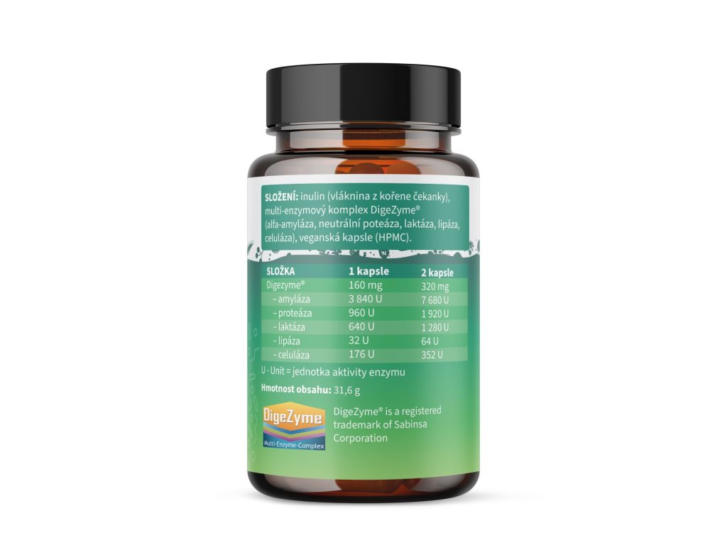 Bojujete s nadúvaním alebo inými tráviacimi problémami? Tráviace enzýmy pomáhajú štiepiť laktózu, bielkoviny, tuky a sacharidy, čím uľahčujú trávenie a prirodzene tak predchádzajú práve plynnatosti, zápcham a podobným problémom. Stačí jedna kapsula denne. | 60 kapsúl, 60 dávok