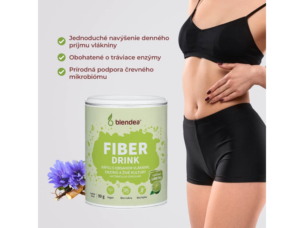Blendea Fiber Drink spája tri druhy rastlinnej vlákniny, šťavu z pomaranča a enzýmy z ananásu s probiotikami. Skvelá kombinácia pre pohodu zvnútra aj navonok. | 90 g, 30 dávek
