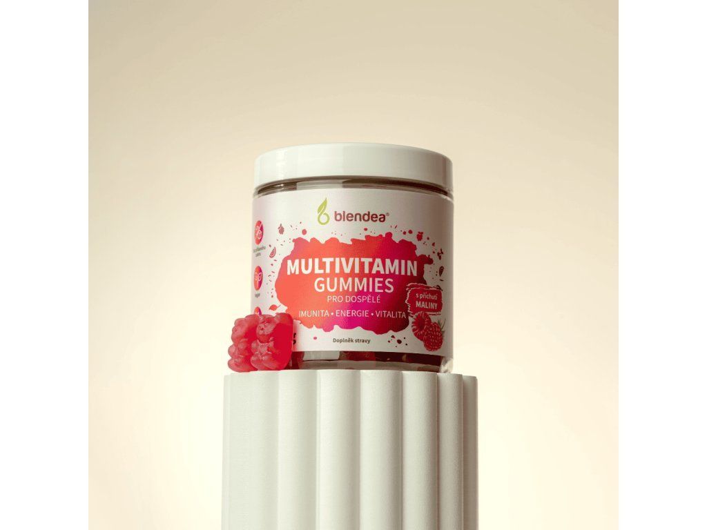 Vyskúšajte multivitamínové Gummies Blendea, sladké želé cukríky s malinovou príchuťou a vyváženou kombináciou vitamínov a minerálov pre podporu imunity, energie a vitality. Samozrejme úplne bez pridaného cukru. | 60 kusov, 30 dávok