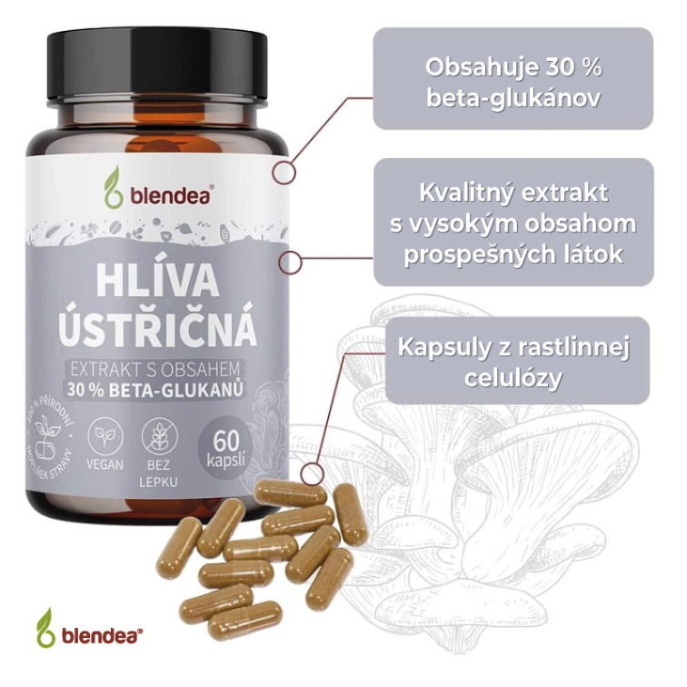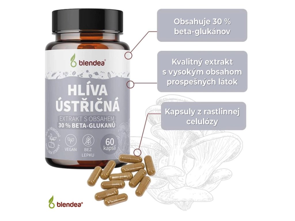 Hlivu isto poznáte. Je obľúbená nielen v kuchyni, ale používa sa aj ako účinný doplnok stravy. Má priaznivý vplyv na cholesterol a pomáha pri riešení kožných problémov. | 60 dávok