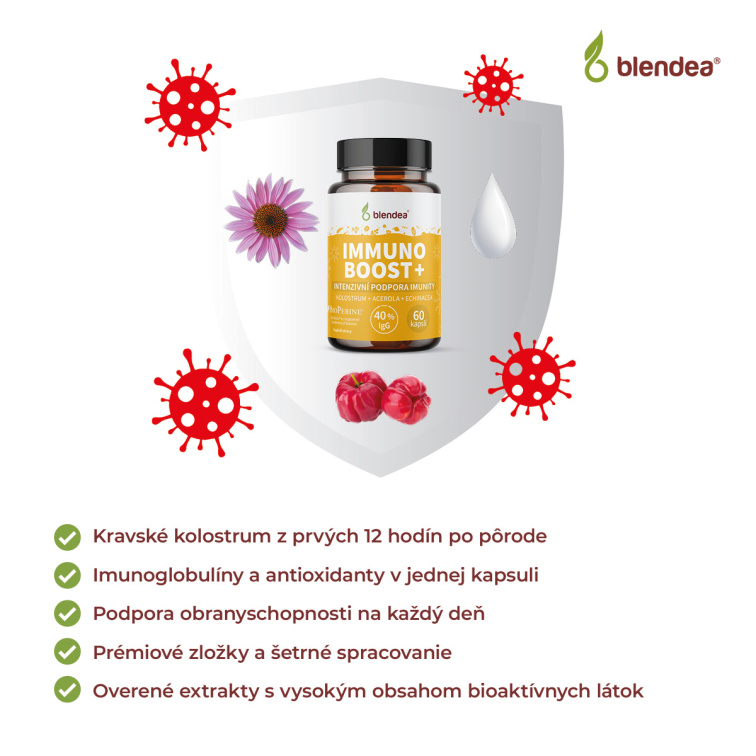 Spojenie kravského kolostra (prvého materského mlieka - mledziva) s prírodnými extraktmi a vitamínmi tvorí z Blendea IMMUNO BOOST+ silnú podporu pre dni, kedy nechcete nechať svoju imunitu náhode a potrebujete, aby fungovala spoľahlivo a naplno. | 30-60 dávok