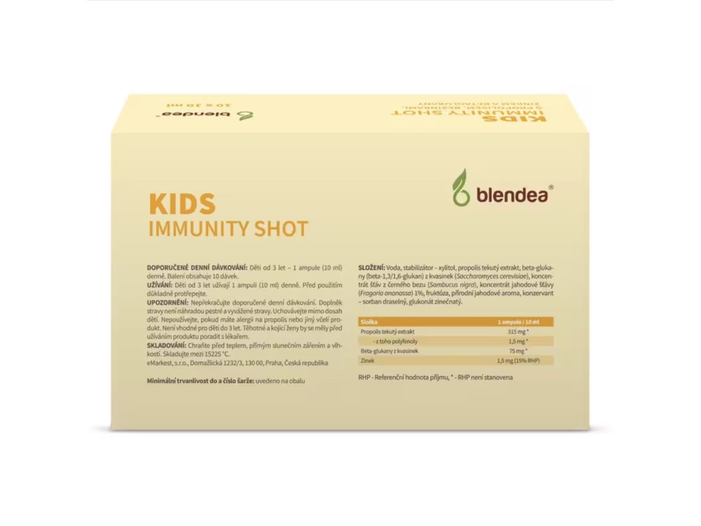 Kids Immunity Shot kombinuje propolis, beta-glukány, čiernu bazu a zinok. Všetky zložky sú v prirodzenej forme a s obľúbenou jahodovou príchuťou. Shot pomáha nielen k silnej detskej imunite, ale aj celkovej odolnosti organizmu v náročnom období škôlky, školy a v detských kolektívoch. | 10 dávok