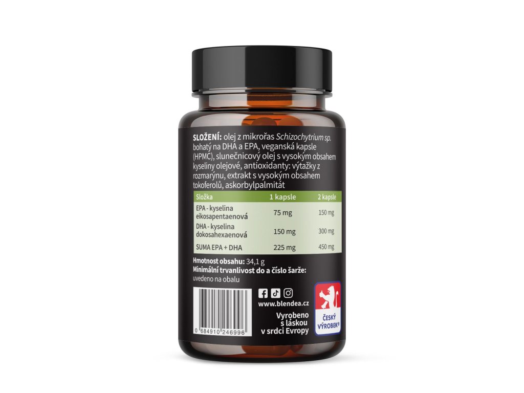 Vedeli ste, že morské riasy sú pre nás nutrične rovnako hodnotné ako ryby samotné? Sú totiž bohaté na omega-3 mastné kyseliny a tie pomáhajú udržať zdravý zrak a funkčný mozog. Zároveň pomáhajú ku zdravému vývinu plodu. Aj omega-3 mastné kyseliny je možné dopĺňať vegánsky bez použitia rýb. | 60 kapsúl, 30 až 60 dávok