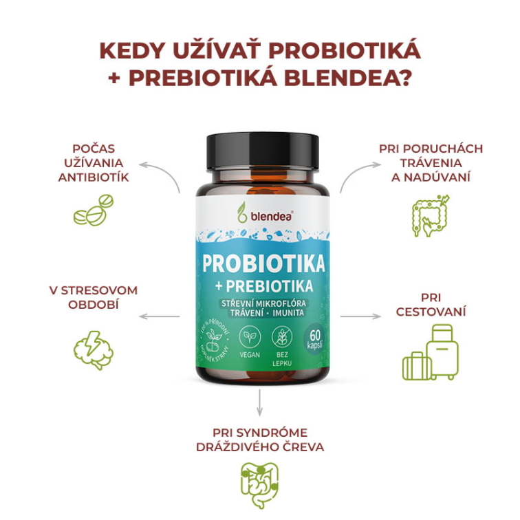 Pomoc pre vaše črevá už je na cestě. Probiotiká spoločne s prebiotikami zaisťujú hladký priebeh trávenia, silnú imunitu a mikrobiálnu rovnováhu v črevách. Ideálny doplnok pri užívání antibiotík alebo pri cestovaní.| 60 kapsúl, 30-60 dávok