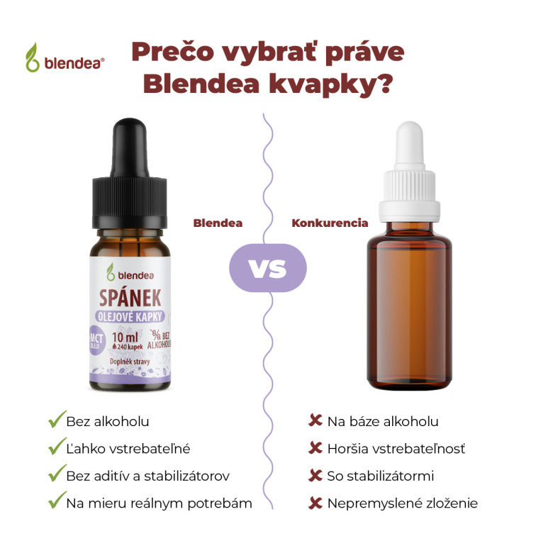 Blendea Spánok v kvapkách je dôkladne vyvinutá zmes bylinných extraktov, ktoré prispievajú k relaxácii a celkovému upokojeniu organizmu pred spaním. Prírodné zložky pomáhajú udržať duševnú pohodu a podporujú prirodzený spánkový režim. | 10 ml