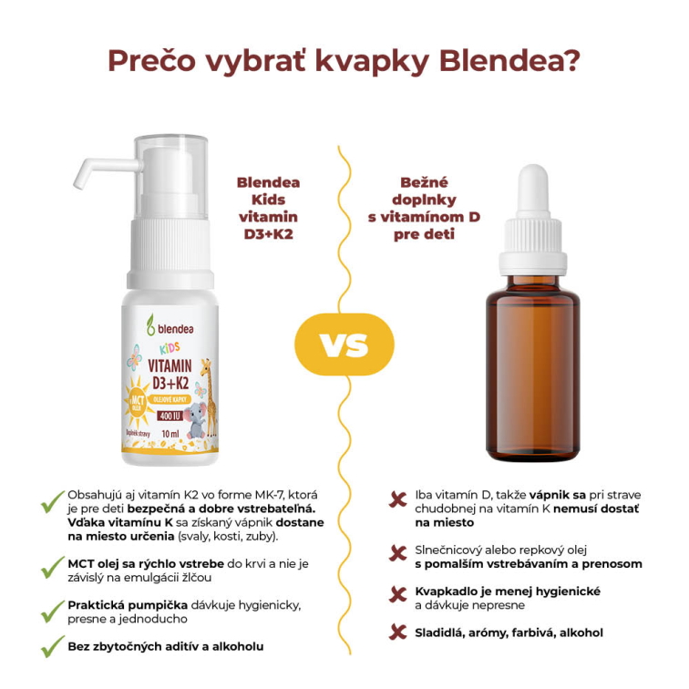 Podporte prirodzený rast a vývoj vašich detí vďaka kombinácii vitamínov D3 a K2, ktoré hrajú kľúčovú rolu pri stavbe pevných kostí, zubov a fungovaní imunitného systému.