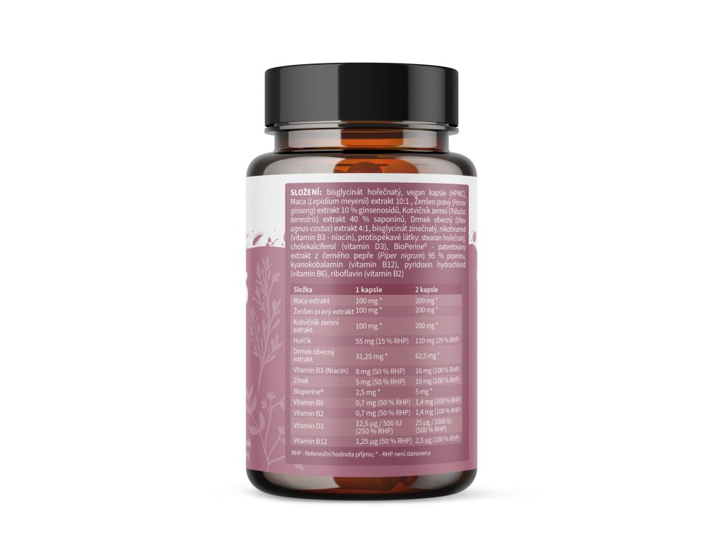 Ženská hormonálna rovnováha by nemala byť zanedbávaná. Starajte sa o ňu vďaka prírode, funkčne a bez vedľajších účinkov. Spojenie tradičných bylín, vitamínov a minerálov v kapsulách vám to umožní. | 60 kapsúl, 30 dávok
